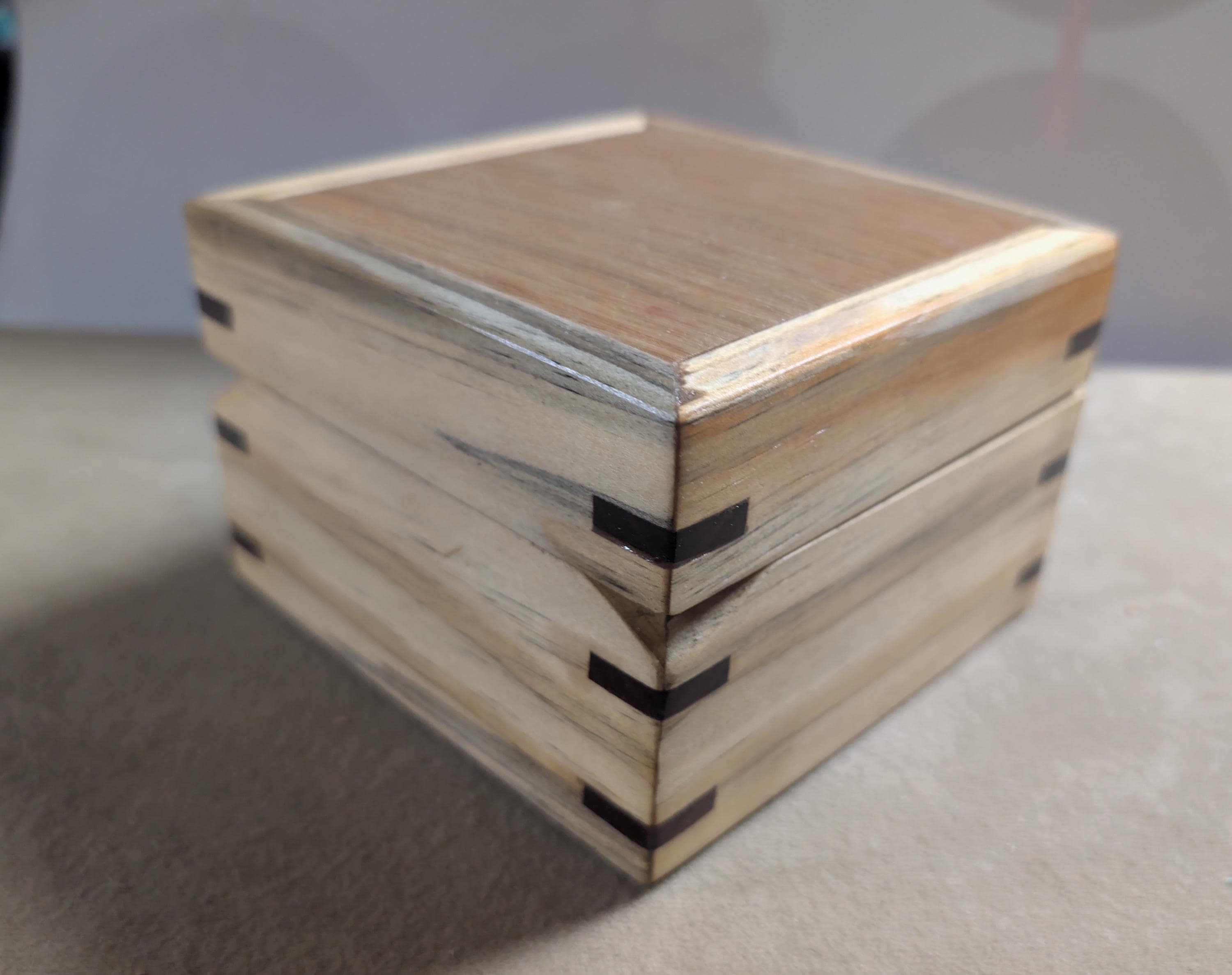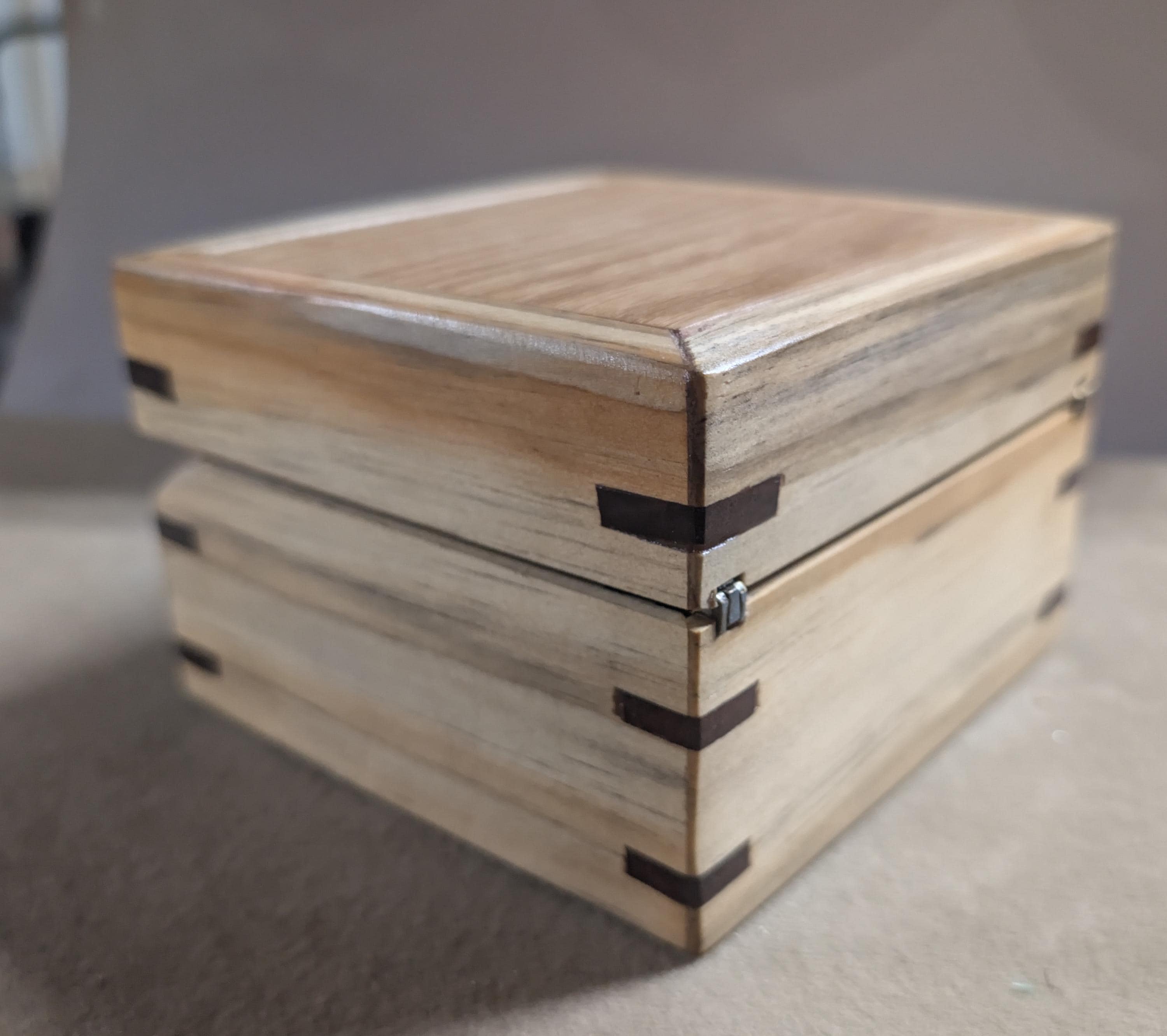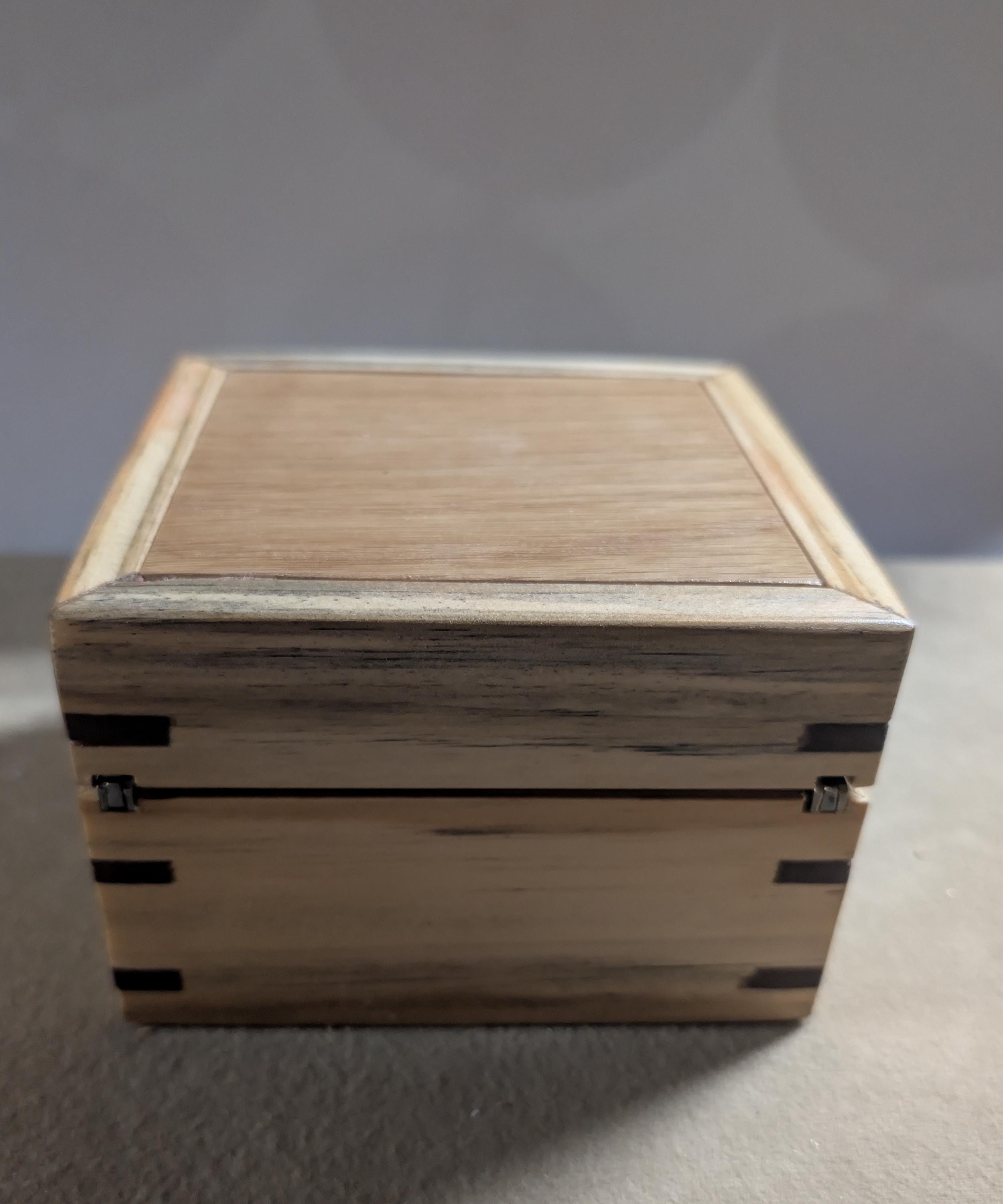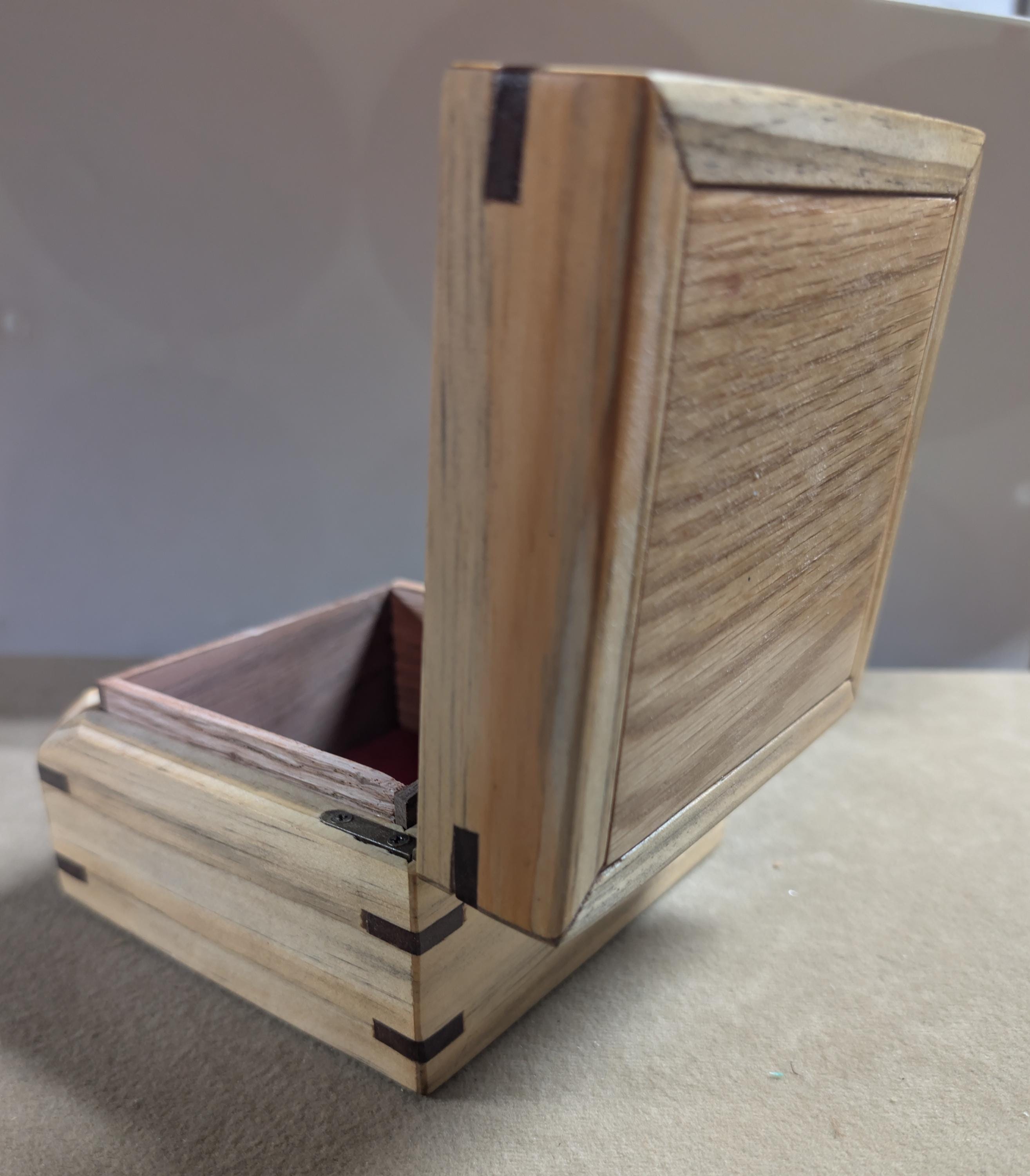 This hand-crafted Made In The USA, wooden jewelry box is made of poplar, oak, and walnut, perfect for storing necklaces, bracelets, anklets, rings, cufflinks, earrings, or any other keepsakes. The square-shaped box features a natural wood color and red velvet lining, adding a touch of elegance. With dimensions of 5 inches in length and depth, and 3 inches in depth, it offers ample space for organizing and displaying your cherished accessories. The rustic/primitive theme and handcrafted design make this jewelry box a unique addition to any home decor. Special orders can be made by email. We offer this size in a variety of hard woods and exotics. Please allow a 3 day grace period on shipping for custom orders. Shipping is free for all orders in the U.S. Personalization is available and will be added to top of box if requested. If another location on box is desired please message with request before purchasing.