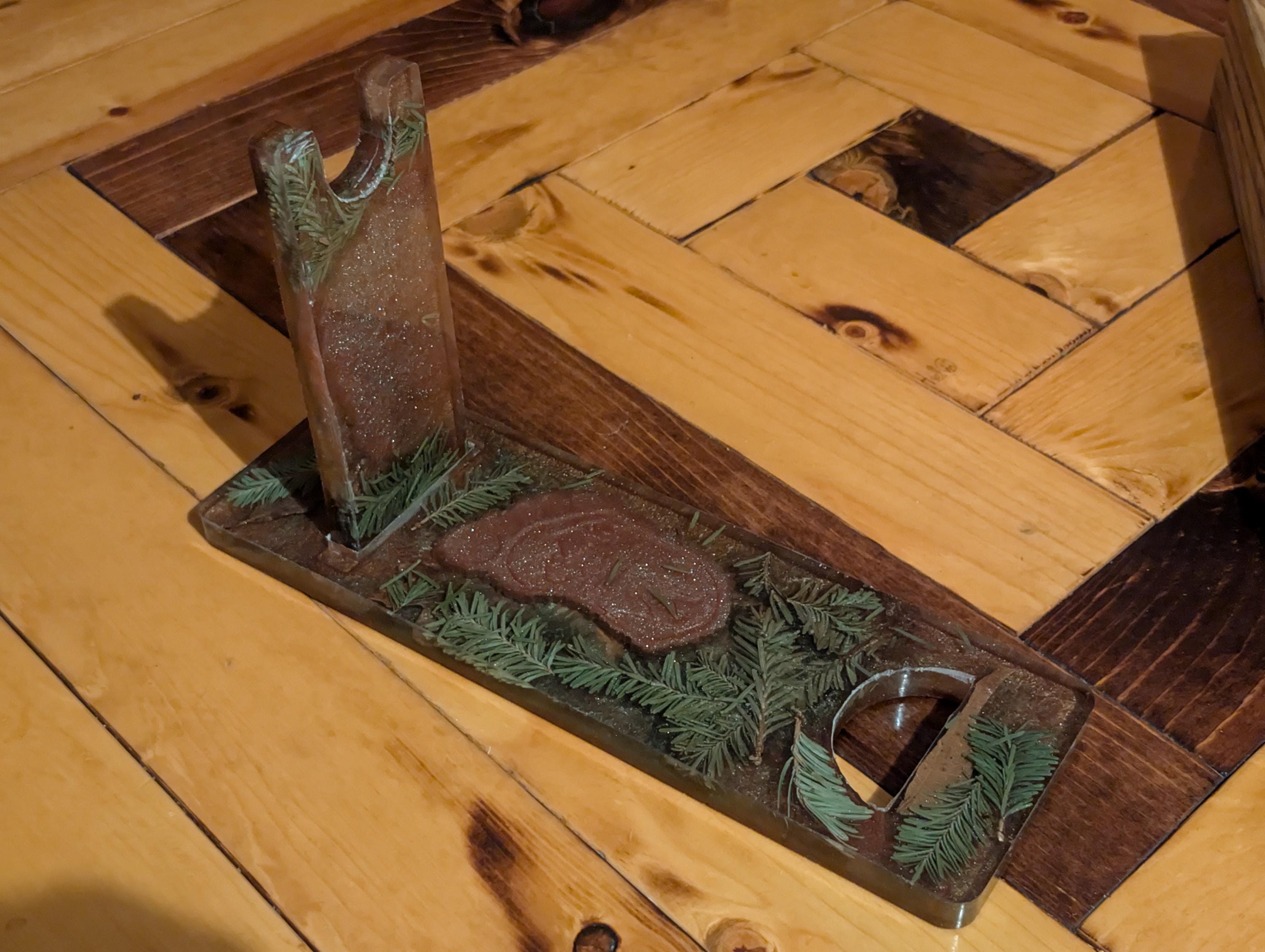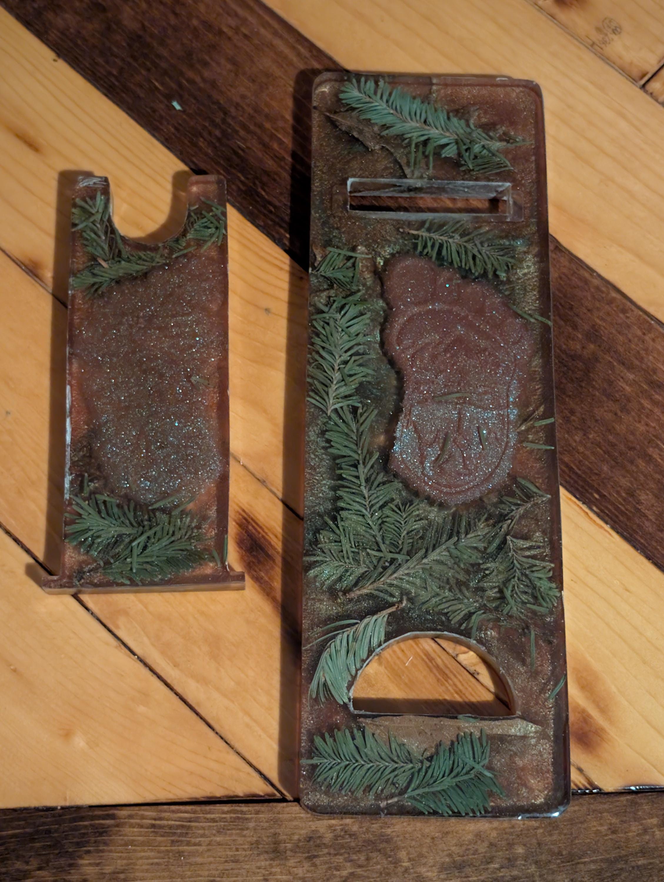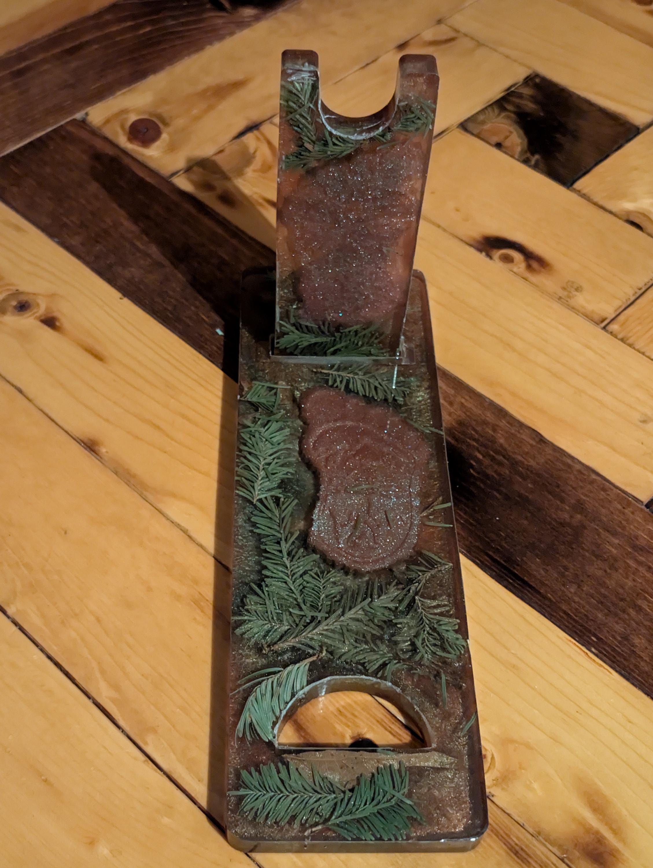 This handcrafted Bigfoot wine/whiskey bottle holder is perfect for any bigfoot lover and adds a modern yet rustic touch to your home. Display your favorite bottle with this exclusive stand made of resin/epoxy material imbedded with bigfoot prints and part of mother natures forest floor. Custom orders can be looked at upon request. Email us and Lets see what we can do for you.